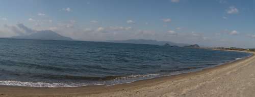 浜辺からは鹿児島県の象徴【桜島】が望むことが出來ます。夏本番には海水浴場として賑わいます。