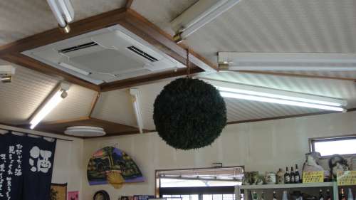 スギの葉を集めてボール狀にしたもので、日本酒の造り酒屋などの軒先に
