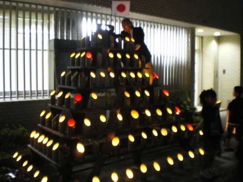 燈籠作り?敷き並べ作業はボランティアで行われます。