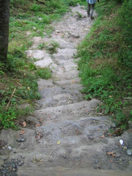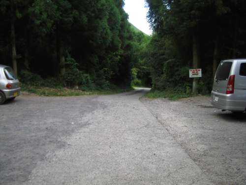 (明礬薬師寺への入口を左手に進み、そのまま山への舗裝道を上がっていきます)