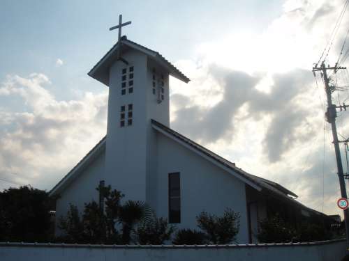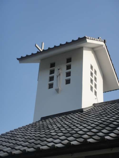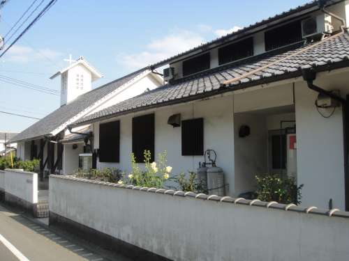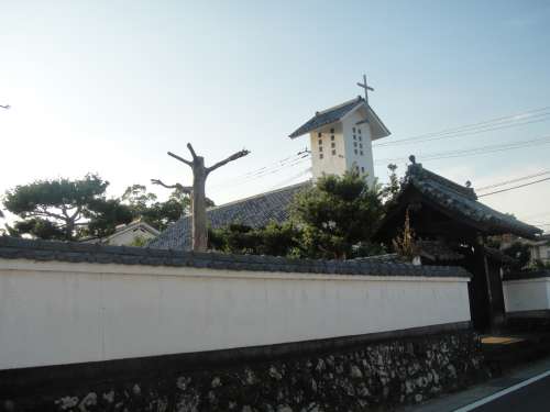 瓦屋根に十字架という日本ならではの教會です
