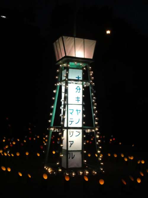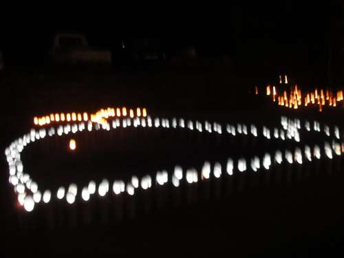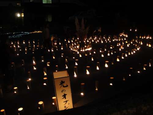 あかりと町中に並べられた約5000本