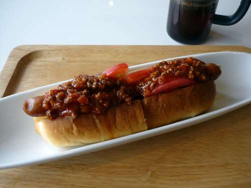 ▲「ヒバリドッグ」480円。自家製ミートソースがたっぷり