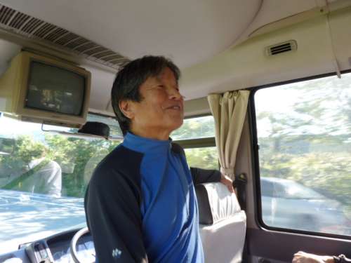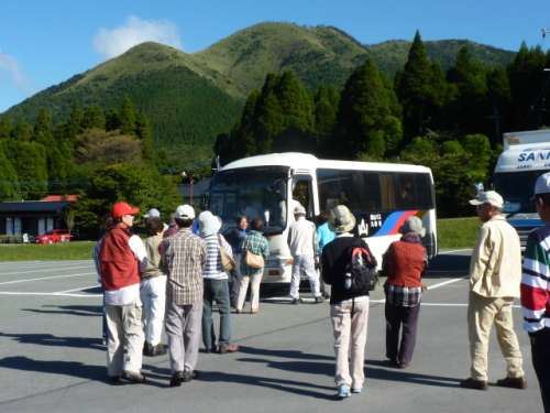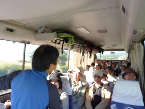 ▲行きのバスの中でも今までの登山の経験に基づく楽しいお話を聞かせていただきました