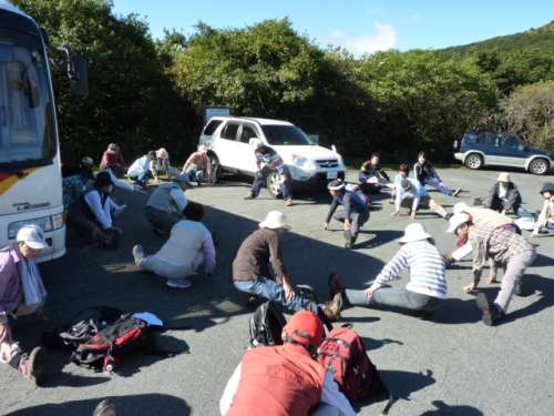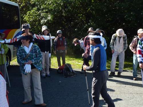 まずは登山の前に準備體操や、ステッキの使い方など注意點を再度、阿南さんの方から冗談を交えながら丁寧な説明をいただきました