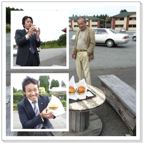 お晝になって、僕と同じように阿蘇バーガーの旗が気になっていた森広さんを誘って、早速行ってみることにしました。