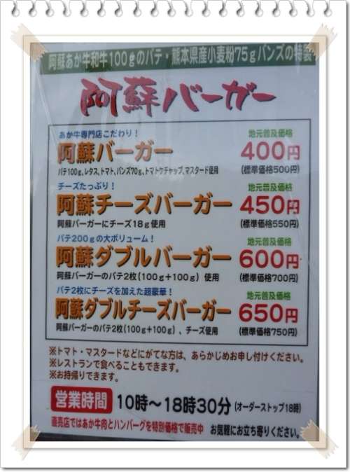 ここ阿蘇バーガーショップは平成19年10月にオープンしました。