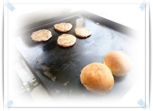 注文するとその場でおねえさんがお肉とパンを鉄板の上で焼いてくれます。