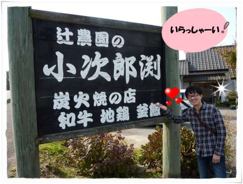 皆さん、こんにちは ロイヤルシティ阿蘇一の宮リゾート営業擔當者?佐野です 阿蘇に來て早くも5ヶ月 もうすっかり阿蘇での生活にも慣れ、楽しく生活しております そんなある日の長閑な休日 仕事熱心な私は休みにも係らず阿蘇の勉強の為に阿蘇方面へ (暇なだけという噂も????????) そして、事務所で晝休みに入りかけていた渡辺君を誘って晝食に行くことに 私、佐野がお屆けする初の『ぐるめ探訪』は昭和61年から20年以上に亙って阿蘇で 店を営んでいらっしゃる 『炭火焼きの店?小次郎渕』さんです 素材の生産から係り、素材の品質と安全性にこだわりを持ち、最高のものをリーゾナブルな 価格で味わっていただくことを心がけていらっしゃるお店とのこと さっそくお店の前の看板にて寫真をパシャリ 丁度お晝過ぎだったので、お腹がペコペコだった私は早速お店の中へ???。 お店の中は、平日のお晝なのにもかかわらず沢山のお客様が來ていらっしゃいました 私も、奧の部屋に通され早速メニューをチェック 注文を通してもらい暫く待っていると?????。 「きたーーー焼肉おいしそーーーーーーー」 早速、どんどん焼いていきます 充分に焼けたら????????????。 「いただきまーーーーす」 炭火で焼かれた野菜、牛肉、鶏肉は、どれも大変美味しい 特にこちらの『小次郎渕』さんは肥育されたこだわりの牛を使われているそうで そんな、ご主人のこだわりを感じます 是非、皆さんも実際のお店で、この味をお確かめください その後も一緒に取材に來た渡辺君とこの調子でどんどん食べ進んでいき、かなりお腹が 一杯になったところで???????。 『小次郎渕』さんのもう一つのお勧め『釜飯』がやってきました 「これまた美味しそうーーーーーーー」テンションは上がりまくりです 一緒に來たお味噌汁とよそわれた釜飯 焼肉でお腹一杯気味のお腹でも、どんどん釜飯がお腹に収まっていきます この釜飯も『ミネアサヒ』というこだわりのお米を使用されてつくられているもの 最後のおこげの部分も大変美味しく、米粒一つも殘さず平らげさせて頂きました 最後にブログにて従業員である奧様と娘様のお寫真をブログ掲載の為、撮らせていただこう と思いましたが、お二人とも恥ずかしがられて撮らせていただけませんでした ですので、むさくるしい男2人で申し訳ないですが、店の玄関口での寫真を掲載しておきます これからも阿蘇の恵を隨時お屆けしたいと思います 是非、皆様も『小次郎渕』さんのこだわりの味を試してみてください 『小次郎渕』 〒869-2225 熊本県阿蘇郡阿蘇町大字黒川小次郎渕 TEL0967-34-0945 開店:PM12:00 閉店:PM22:00 www6.ocn.ne.jp/~kojirok/index.html 寫真は全て平成22年11月撮影