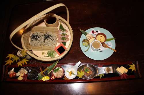 鶏壽司と蕎麥のほか、小鉢とデザートまで付いた豪華なランチが楽しめます。