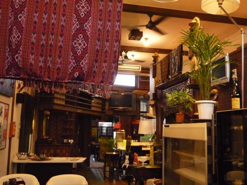 アジアンテイストの布や木のインテリア、置物で飾られ、バリのリゾートホテルのような雰囲気