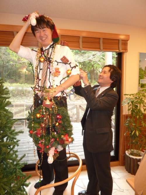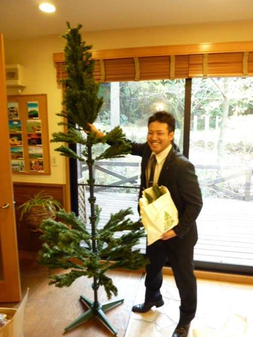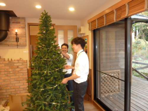 ★まずは飾り付けをする為のツリーの作成です 渡辺君の笑顔が眩しいです