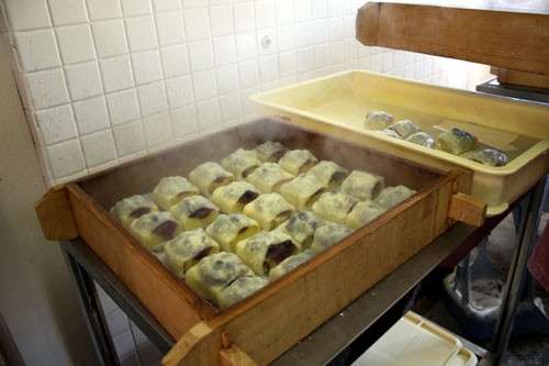 いきなり団子が蒸し上がりました 湯気はほんのり甘い香りがします