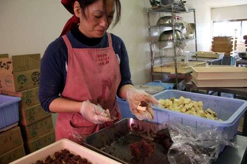 熊本市新町にある「くま純」では、1日500個以上いきなり団子が作られています。サツマイモの皮むきとカット、あん作り、小麥粉の皮に包む工程はすべて手作業