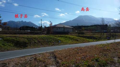 敷地內から阿蘇五岳のシンボル「高岳」「根子岳」が望めます。