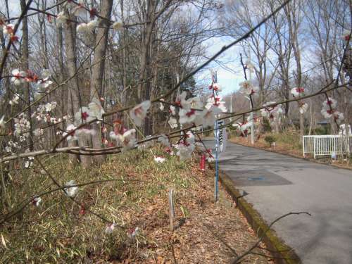 分譲地內では,いたるところで梅の花が春の香りを放ちはじめました。