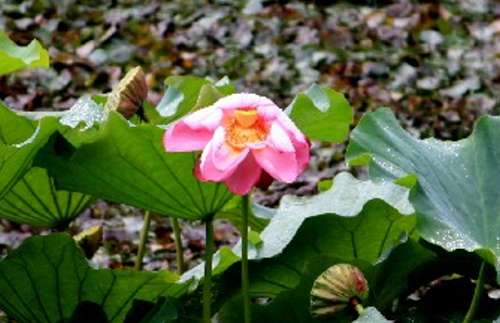 調(diào)節(jié)池には夏の名殘り、大きなハスの花が一輪だけ際どく殘っていました。