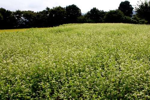 分譲地の丘から麓に降りると、あちらこちらに収穫を控えた蕎麥畑が。