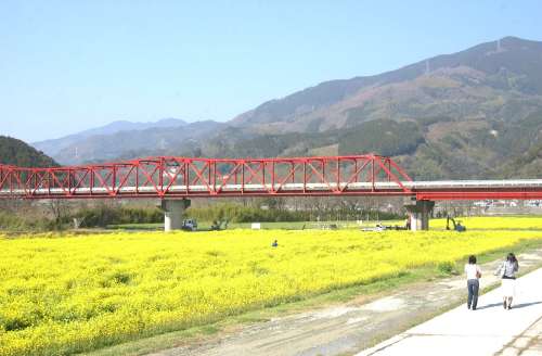 肱川にかかる赤橋をはさんで上流と下流に菜の花畑があるのですが、それぞれ地元の有志が企畫したイベントも開催されます。