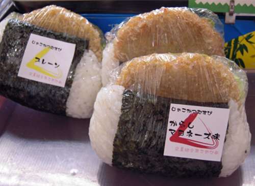 おむすびの種類は普通のじゃこカツを挾んだプレーンとからしマヨネーズ、カレーの3種類。