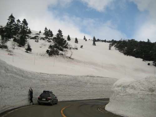 ▲平成21年5月撮影:エコーライン途中の雪壁:現(xiàn)地より約20km
