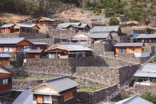 軒に達するほどの石垣が整然と積み上げられ、まるで城塞のようにも見える西海地域にある小さな集落愛南町「外泊(そとどまり)