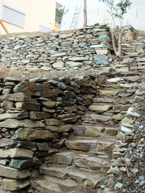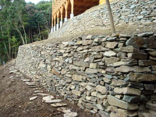 因みに、佐田岬半島にも石垣文化があり、半島のいたるところに緑色変成巖で積まれた石垣が殘っていて、佐田岬リゾート內にも石垣を積んでおられる宅地があります。