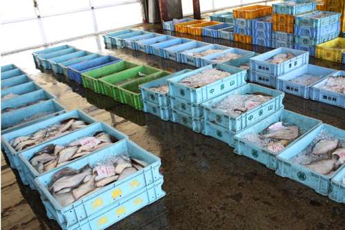 何でみんな腹を上に向けているんでしょうか??? 漁師さんに聞き損ねて、まだ未解決のままなんですが、鮮度なんでしょうかね? 私の知識ではこの魚がカレイなのかヒラメなのか???わかりません。