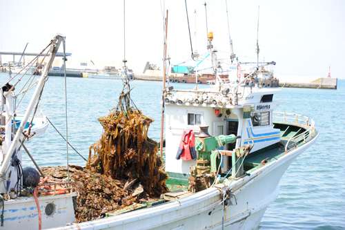 クレーンの先には茶色いものが見えますが昆布です! そうなんです?! £憮Pげではなく、水揚げの為のクレーンだったんですね。