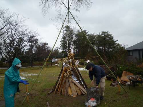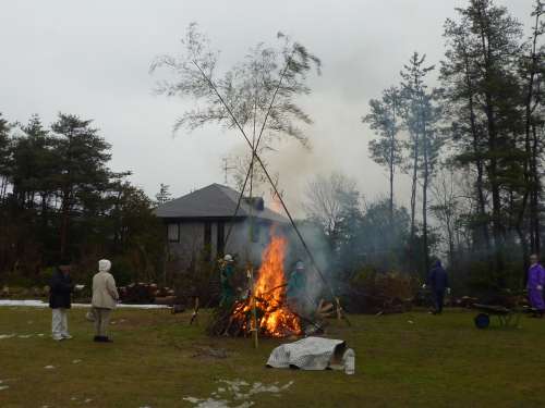 能登現地案內所前にて、新年の恒例行事『左義長』を行いました。