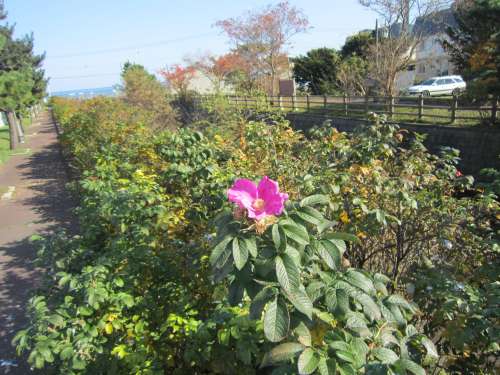 秋に一輪だけはまなすが咲いているのもなかなか風勢あっていいものですね。