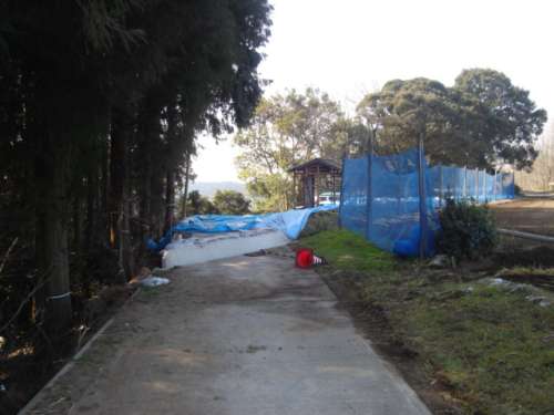 テクテクと前に進(jìn)んで行きますと、途中でブルーシートを敷かれた歩きにくい所もありましたが、前方に見えてきました。