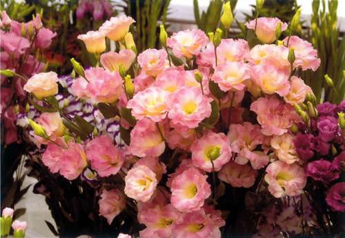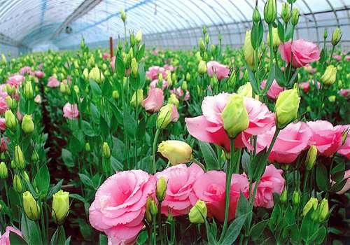 熊本では、夏場は阿蘇などの冷涼な土地で、冬場は菊池や球磨などの平坦地でハウス栽培され、冷房や暖房に加え、最近は電照などの高度な技術を駆使し、年間を通して品質の良いトルコギキョウの出荷を可能にしています