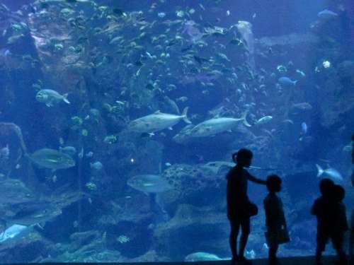 水族館の中に入るとすぐに目の前に圧倒されそうな大きな水槽が現れます