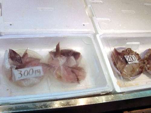 海の近くの船川臨海通りにある観光名所の“海鮮市場”に寄ります。ここは活きのいい魚介類を始め、筋子、干物などの水産加工品が豊富にあり、男鹿の名物や名産品なども販売されている有名処です