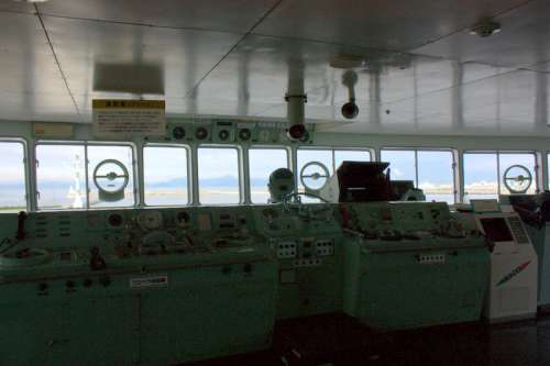 客室やいろいろな展示物を見ながら船の上部へと登っていまきす、そして船橋(操舵室)へ、その船が置かれている周囲の狀況が一番よく把握できる場所です