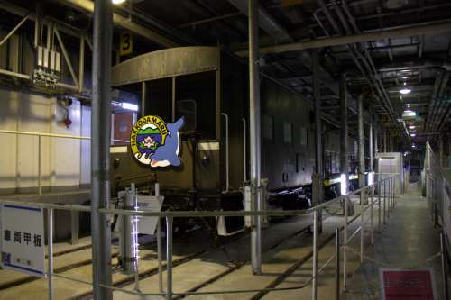 世界的にも珍しい鉄道車両を輸送するためのスペース『八甲田丸』には4列に軌道が敷かれており、48両の車輌を積載する事が出來たそうです