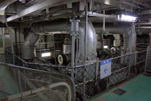 同じエンジンが8基もあって、4機ずつのチームに分かれて2基のプロペラを回すそうです、1基~2基のエンジンが止まっても問題なく船を運航できるとか、正確な鉄道ダイヤをそして海峽を渡り交流する人々の生活をしっかりと支えていたのですね~