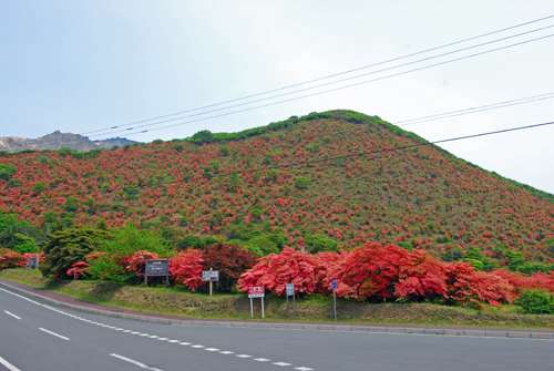 この寫真凄くないですか?6月の恵山の寫真です。 恵山ではこのつつじが有名で、5月中旬から6月上 旬まで「恵山つつじまつり」が開催されています。