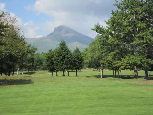 ○鹿部カントリー倶楽部インコースにてコース越しの駒ケ岳