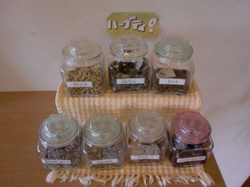 7種類のハーブティーをご用意しています(平成24年6月撮影)