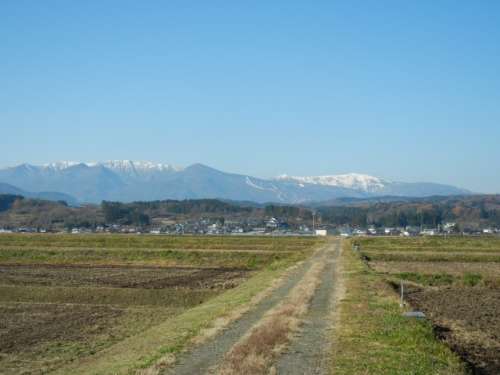 蔵王連峰の頂(いただき)に綺麗な冠雪を見ることができます。