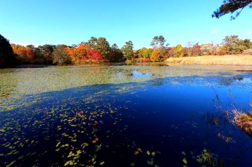 裏磐梯サイトステーションのそばにある小さな沼ですが、 周囲の紅葉と併せて、ヒツジグサなどの水草の紅葉も 楽しめる場所です フラットで歩き易い散策路は一周約15分(約700m)の距離ながら、 草花や野鳥が多く、 四季折々に楽しめる変化に富んだコースです 私もここを歩く度に、カモやヤマゲラとはよく出會います
