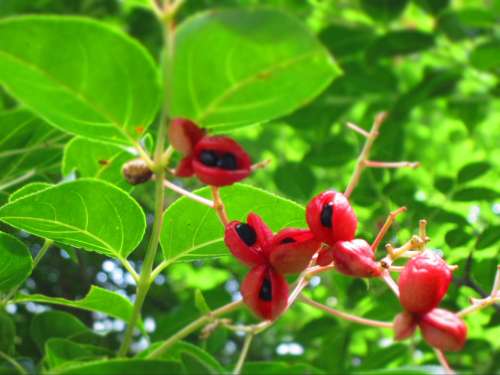 久しぶりに分譲地內の樹木を観察していると 道路沿いに赤い実をつけた樹が目立ちます。