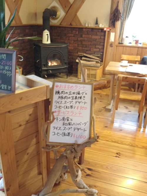 丁度他のお客さんがいなかったので、ストーブの前の席に陣取りました