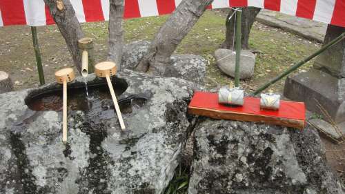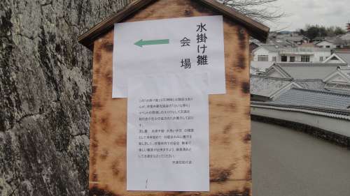 流し雛 水掛不動 水洗い弁天 の模倣として本年初めて日曜日のみに展示を致しました。杵築市內での安全 無事で楽しい鑑賞ができますよう、お清めとして水掛けなさってください。」