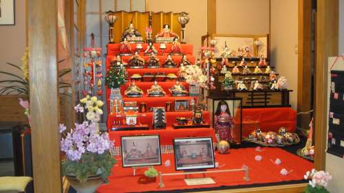 こちらでは、江戸後期の雛人形や浮世絵を展示し、酒粕などいろいろと販売していました