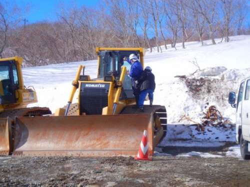 大型の除雪用ブルドーザーが出動の準備中です。