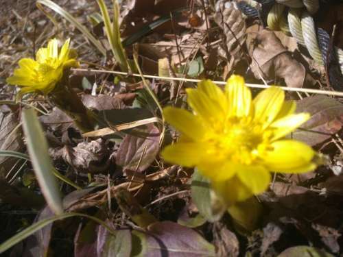 くっきりと鮮やかな黃色い花の「福壽草」を見つけました。