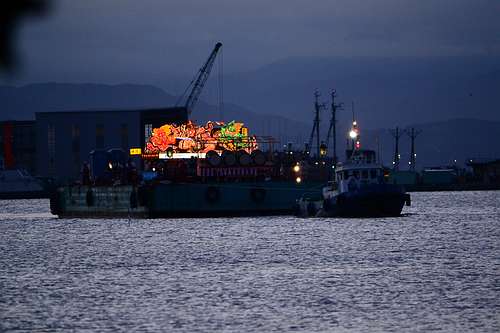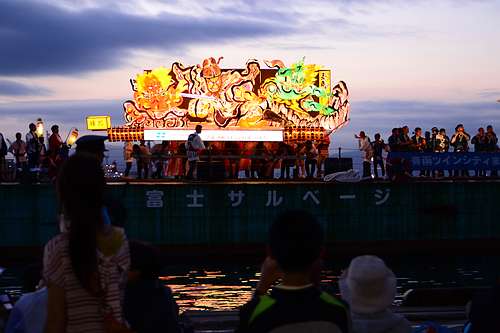 今年の特別な企畫とは、ねぶたの海上運行。ねぶたの海上運行には燈篭流しのような儀式的な意味があるとのことで門外不出だそうですが、青函友好の証として一度限り青森市から許可されたそうです。